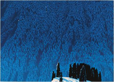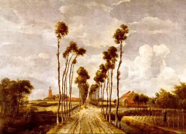 A选项为版画《松谷》,B选项为油画《开国大典》,D选项为荷兰画家霍贝玛的油画风景《村道》,如果学生不能准确知晓题目中所叙述的内容,根据题意从画面的色彩效果和绘画形式基本也能做出判断。B选项容易产生混淆。