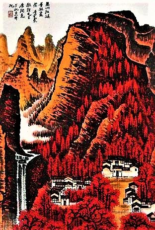 正确选项为:C。这幅画是李可染的中国画作品《万山红遍》,根据毛泽东诗词《沁园春·长沙》中的名句“万山红遍,层林尽染”而创作的。能够了解选项中的作品及其绘画形式、表现内容、作者等相关信息,做出正确选择。